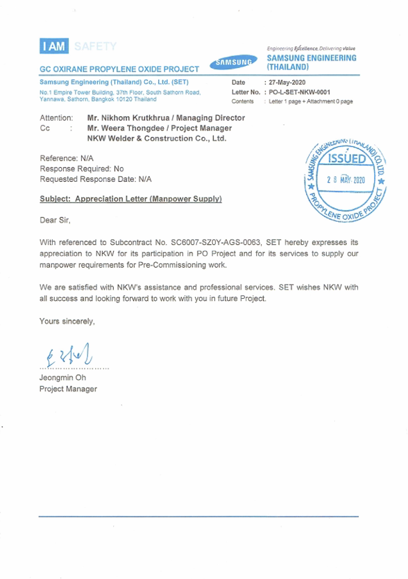 Headquartered in Banchang , Rayong, Thailand. NKW is one of the Thailand's premiere engineering detailing, procurement, construction and services companies, employing approximately 245 peoples serves around local country, we have evolved into a prominent contractor of the electrical power plant, hydrocarbons, petrochemical, industrial, civil infrastructure, government service and commercial sector.